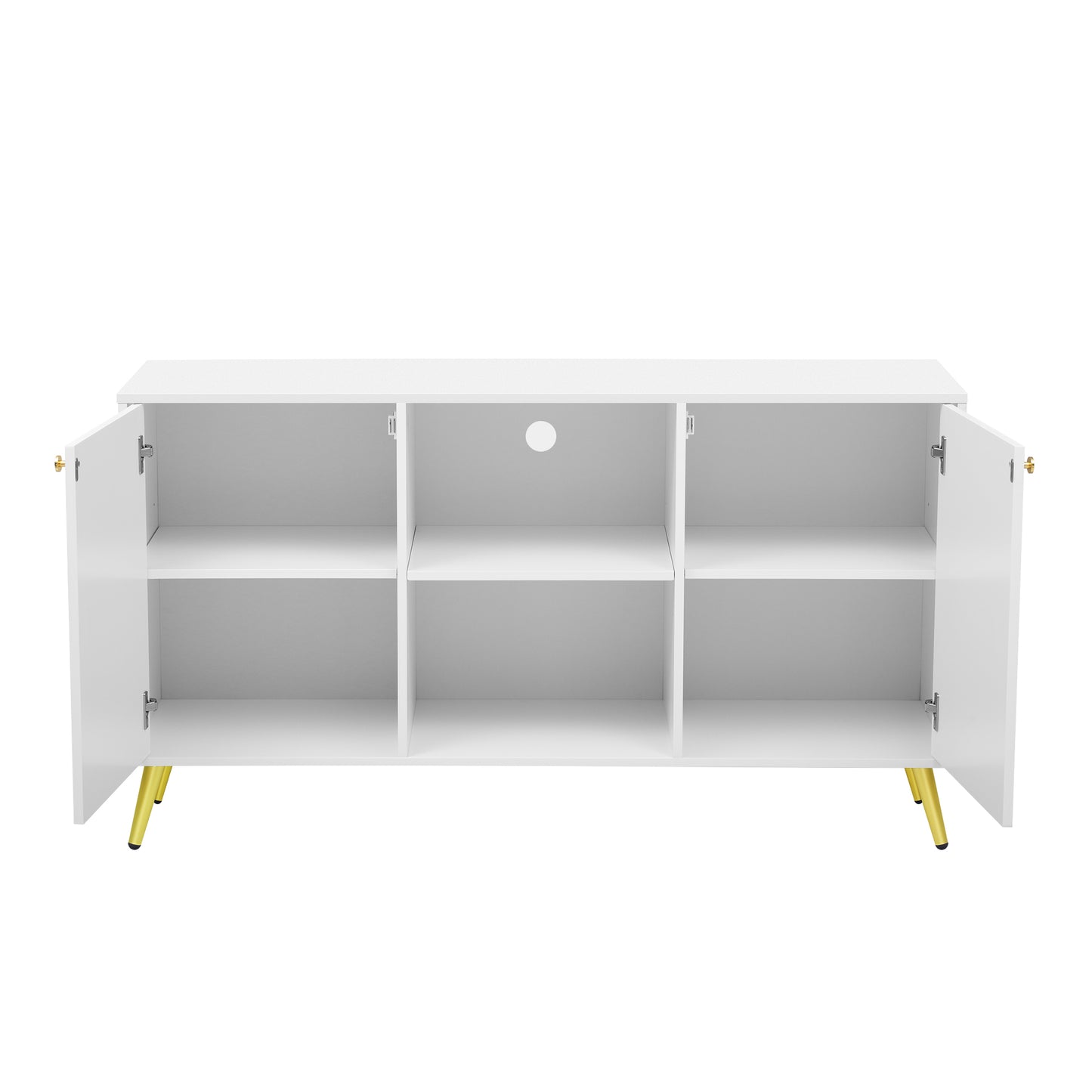 - Crafted from sturdy and durable golden metal, the legs of this TV stand ensure stable support for your television and media equipment. The metallic finish imbues the design with a luxurious texture, elevating the sophistication of your home decor. The unique middle partition design can be used as a display area for decoration and as a layered storage solution, improving space utilization and combining practicality and aesthetics.