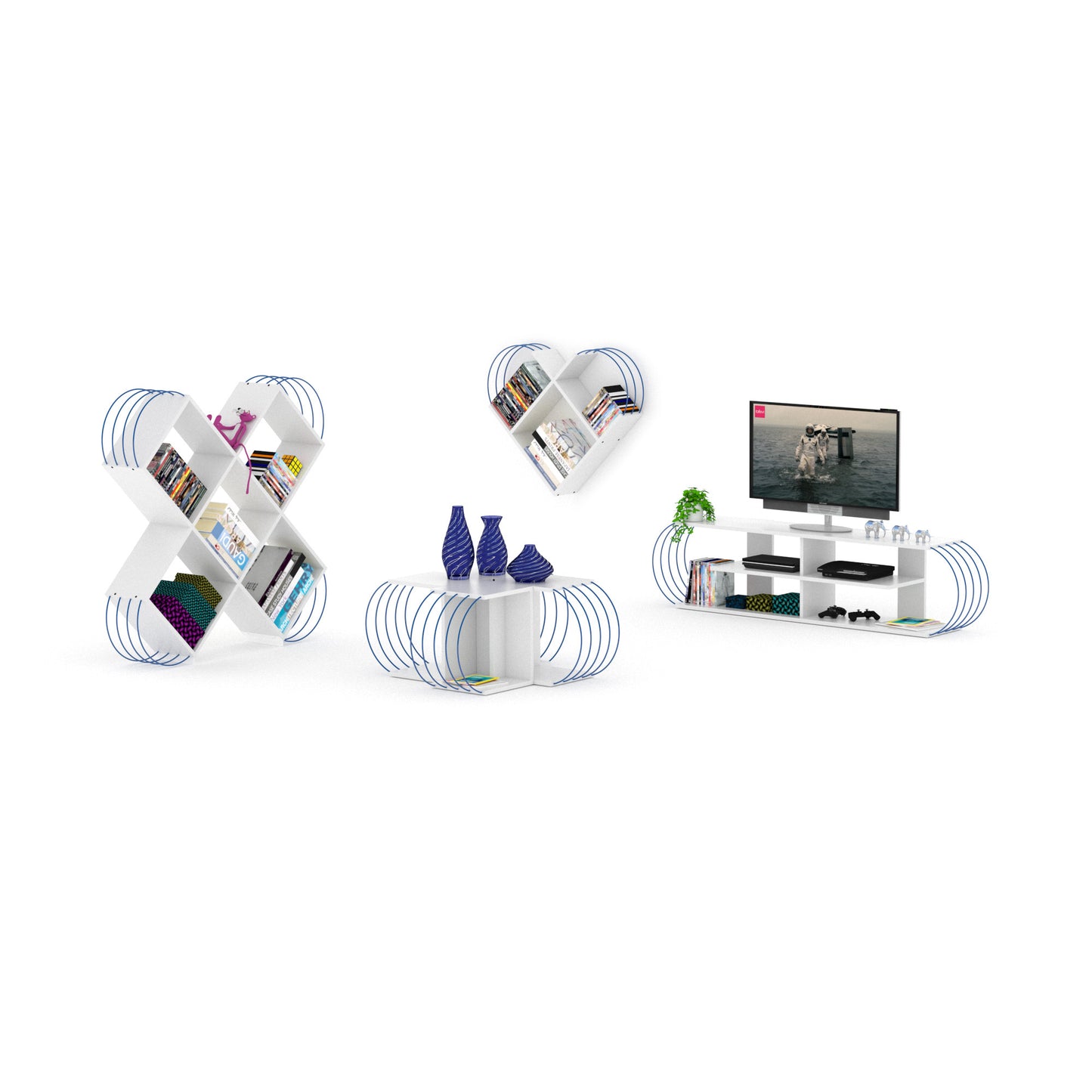 Spollis Modern Open Storage TV Stand | White & Blue