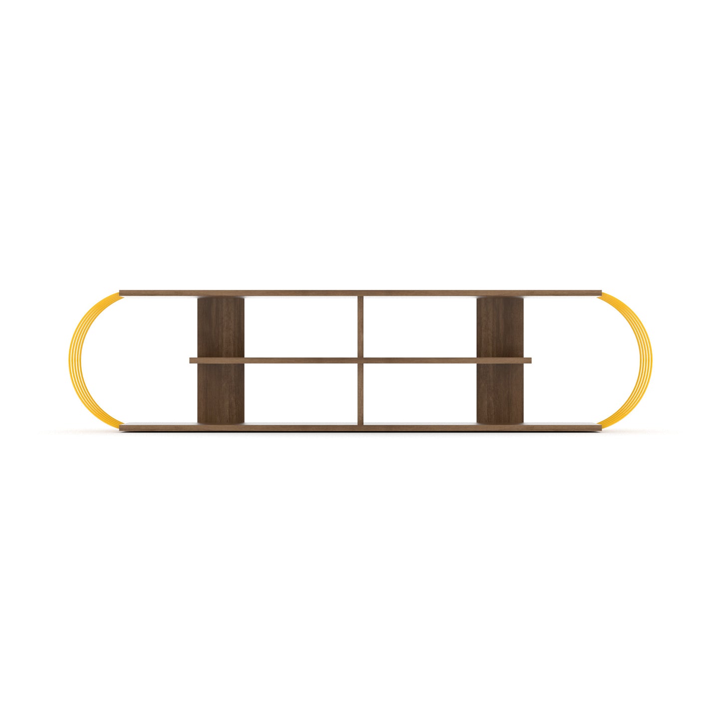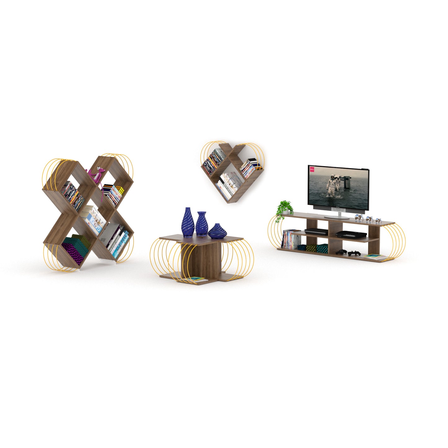 Spollis Modern Open Storage TV Stand | Walnut & Gold
