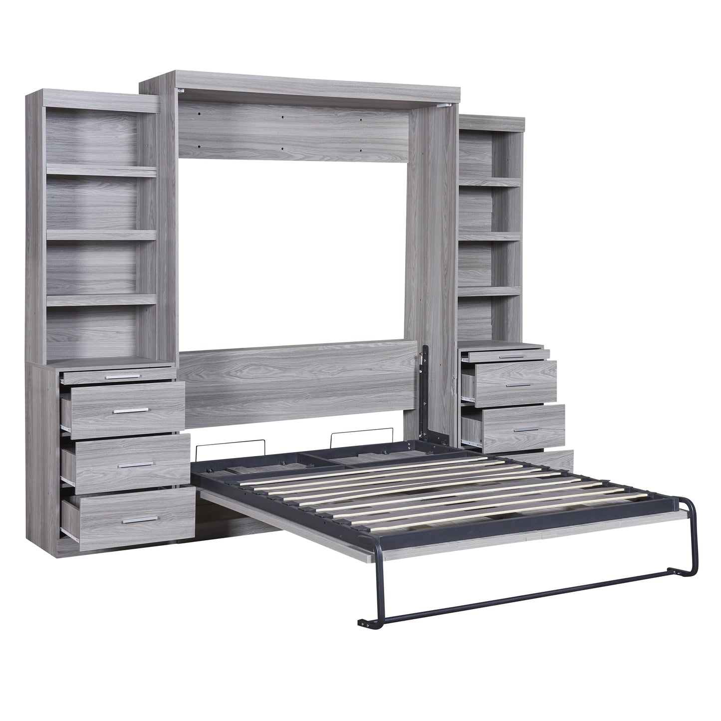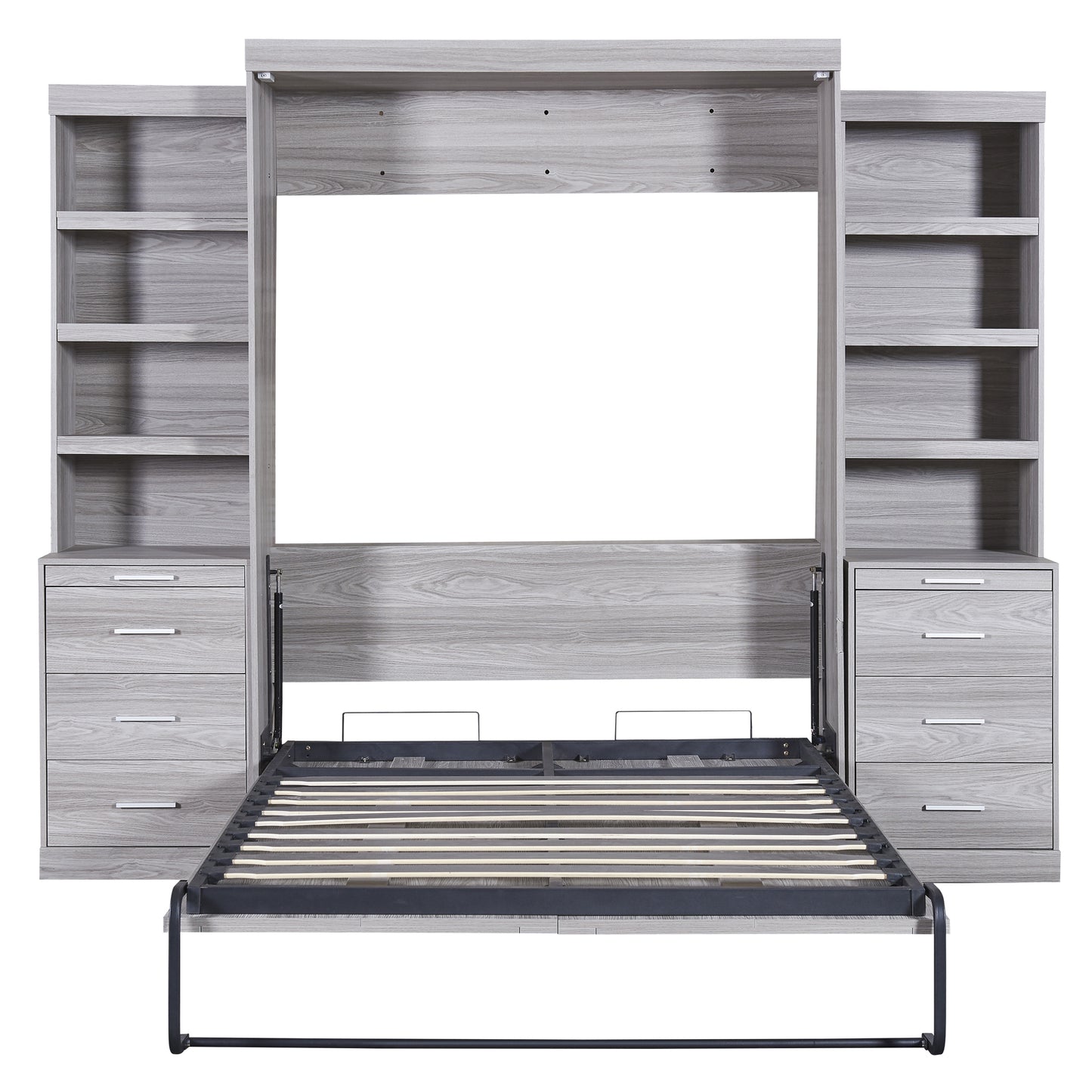 Full Size Murphy Bed with Storage Shelves and Drawers, Gray