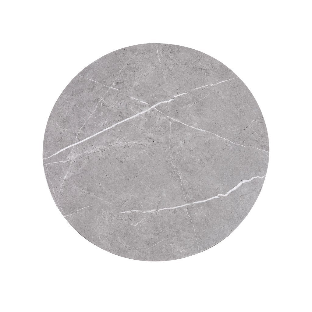 - Round mixed material coffee table adorned with a faux marble table top
